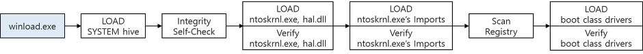 winload.exe 에서 수행하는 동작 흐름을 간략하게 도식화 하면 다음과 같다.